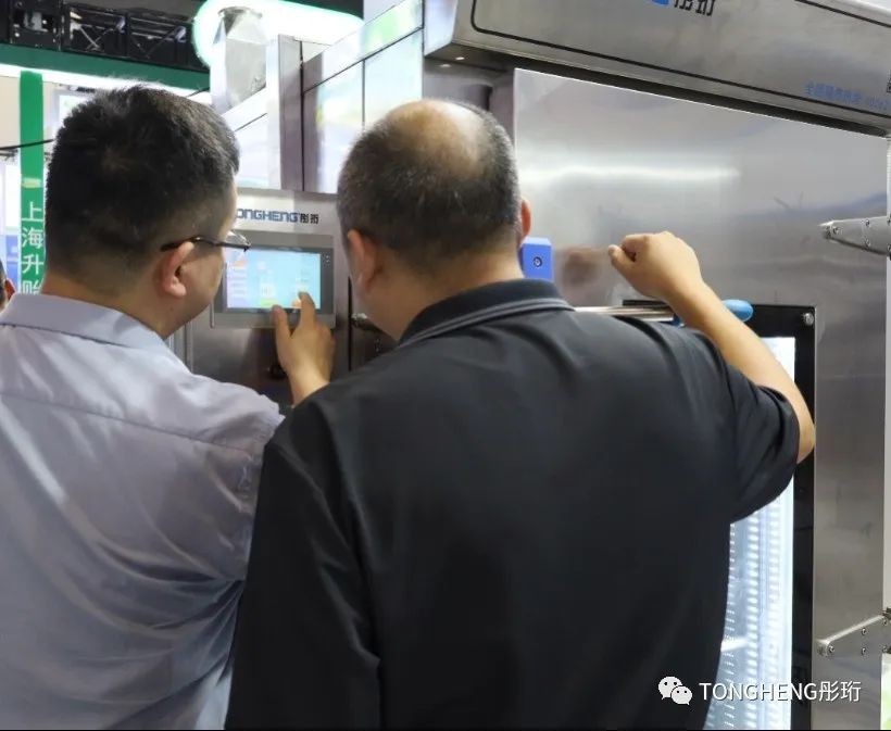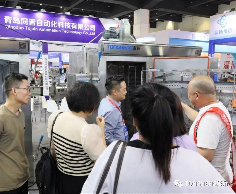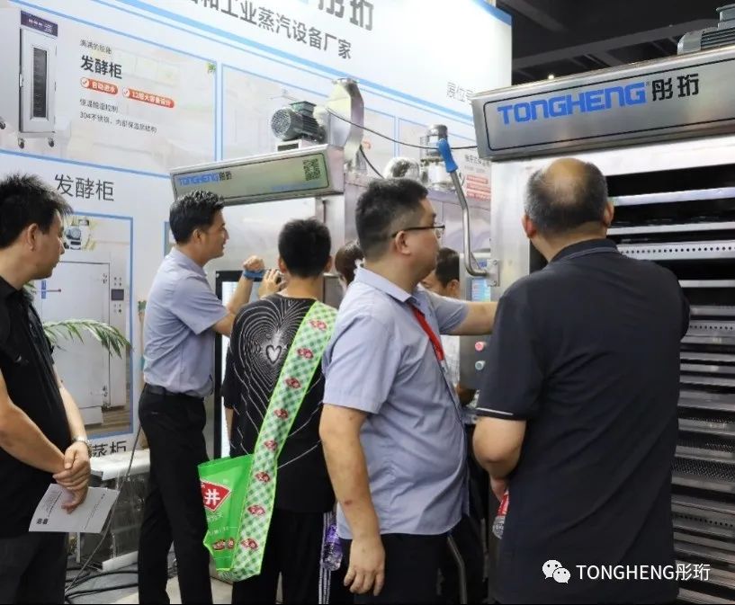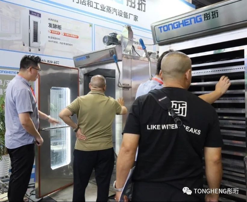 彤珩結合客戶和市場多種需求,推出單門推車式蒸柜、雙門推車式蒸柜和隧道式蒸柜,彤珩多種工業設備大容量,適用多種場景,能大大的提高生產效率、生產線的運營效率和產能。亮眼的新產品實力吸引賓客紛紛駐足商談,現場火爆。