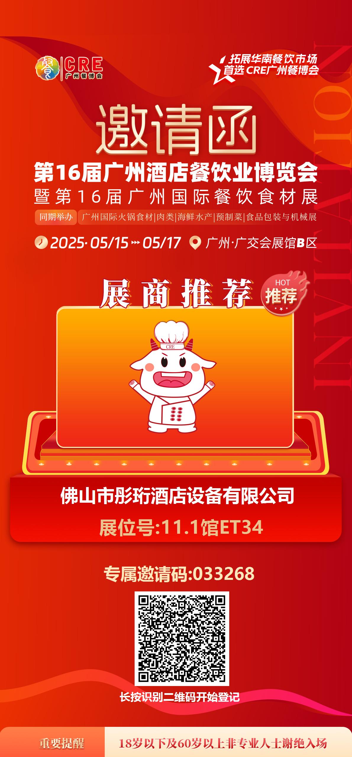 第16屆廣州酒店餐飲業博覽會作為亞太地區極具影響力的行業展會,匯聚全球餐飲產業鏈的企業與專業觀眾。彤珩酒店設備期待借此平臺,與國內外餐飲品牌、行業伙伴及專業人士深入交流,探討市場趨勢,挖掘合作機遇。