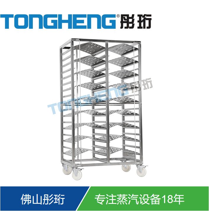 18層36盤推車帶卸水版,適用于單門/雙門的大蒸柜,層距可根據客戶要求定制。